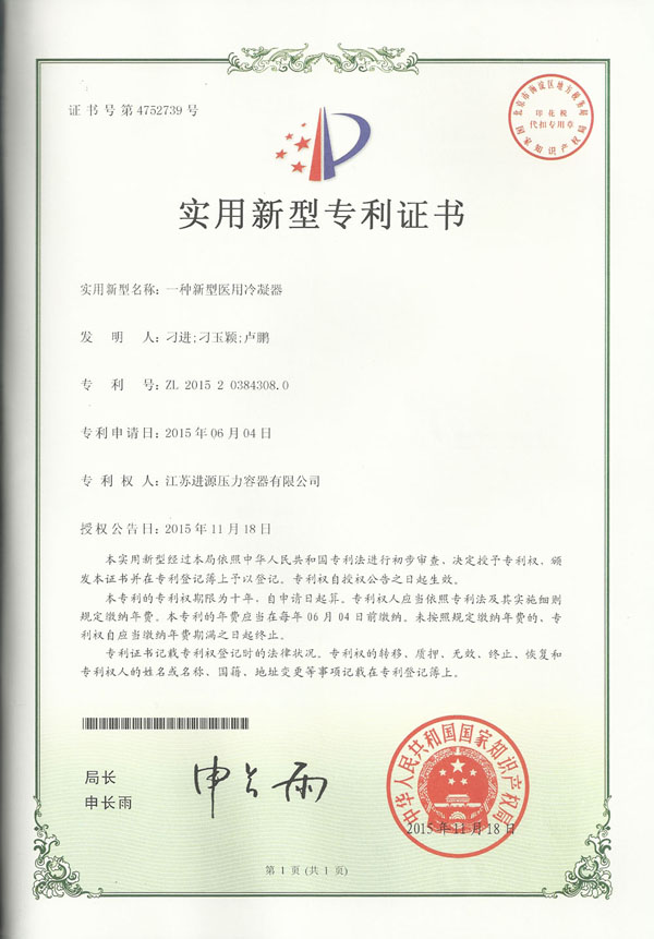 新型醫用冷凝器專利